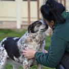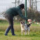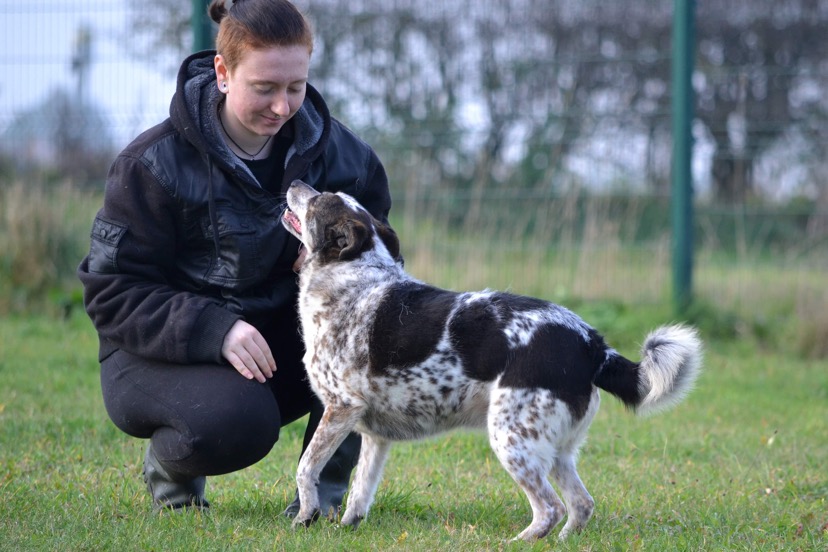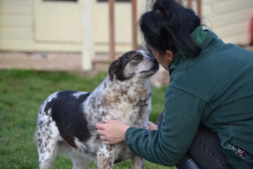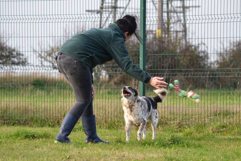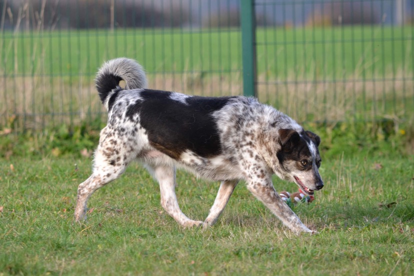 Libby is a joy once she knows you. When she first came into the rescue she was so scared and just hid away from humans. Over time she has come to trust us and we have the pleasure of seeing her big smile and tippy tappy feet when she’s excited to see us but sadly she barks at strangers or hides when in her kennel and does her best to put people off. Libby is an energetic dog, around 5 plus years old, and loves to run and play. She is good with other dogs out and about but can boss her kennel mate around sometimes so maybe better as an only one or with a very easy going confident neutered male. Libby is spayed, chipped etc. She is ready for the next stage of her life: her very own humans and very own home. She needs a quiet and experienced adults only home being a very nervous dog who can’t cope with a busy household or lots of visitors. She will find leaving us very difficult at first as we have become her safe place but she has no idea how much more wonderful her life could be with her very own patient and kind people who will give her the time and space and slow introduction to the big wide world she will need to settle and flourish. Please read through our adoption criteria in the ADOPT section before contacting us. Libby will need adopters willing to make multiple visits over a few weeks to get to know her and build trust. We are currently running on appointments only.