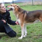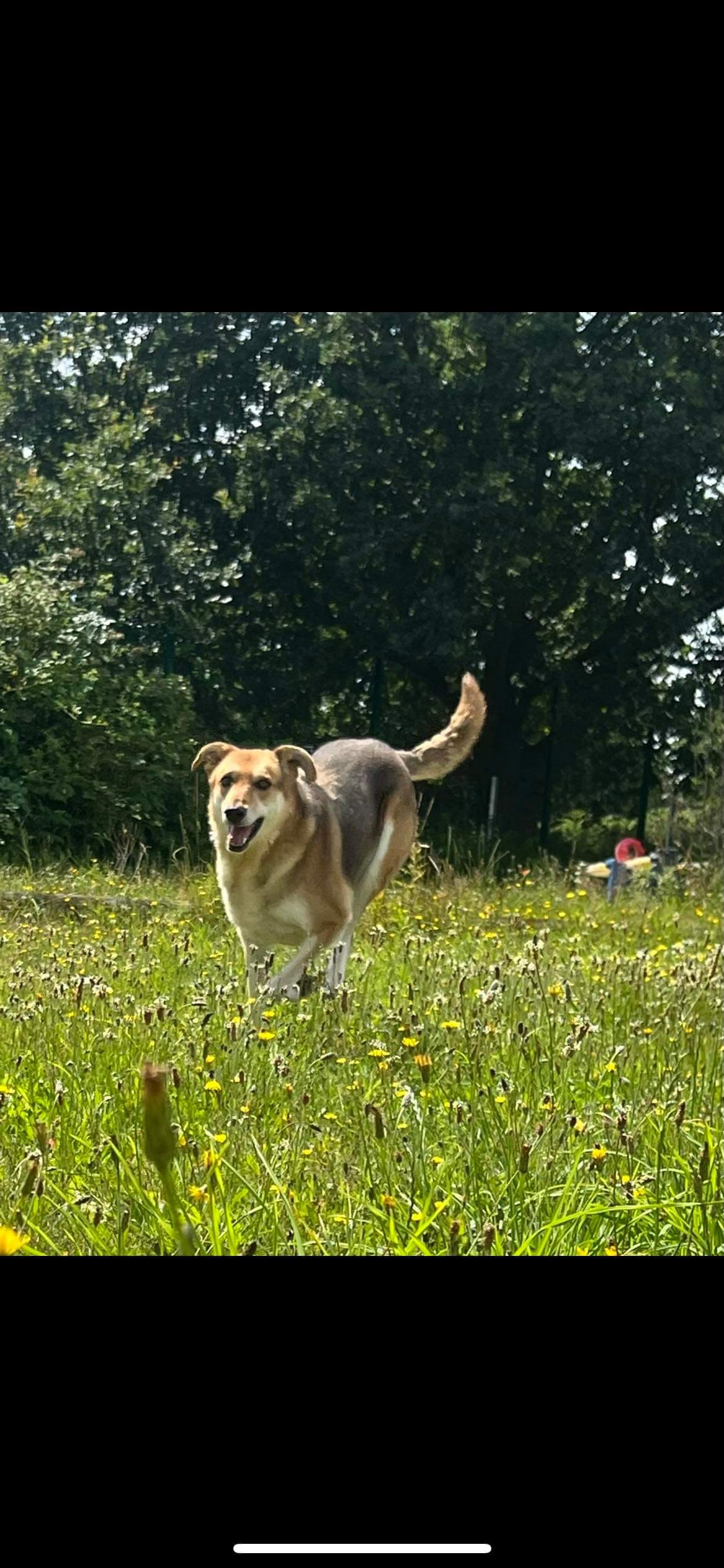 This handsome chap is the not so tiny Tim. Tim is around 5 years old, neutered, vacs and chipped and looking for his perfect forever home. Tim is a super chap and very friendly when he knows people well but takes time to trust strangers particularly men. Tim gets on well with female dogs and can live with a similar sized female dog after suitable introductions. Adults only would be best for this boy and folks who are willing to make multiple visits to get to know him. We are currently appointment only so please read through our adoption criteria in the ADOPT section before getting in touch to discuss Tim or any of our dogs.